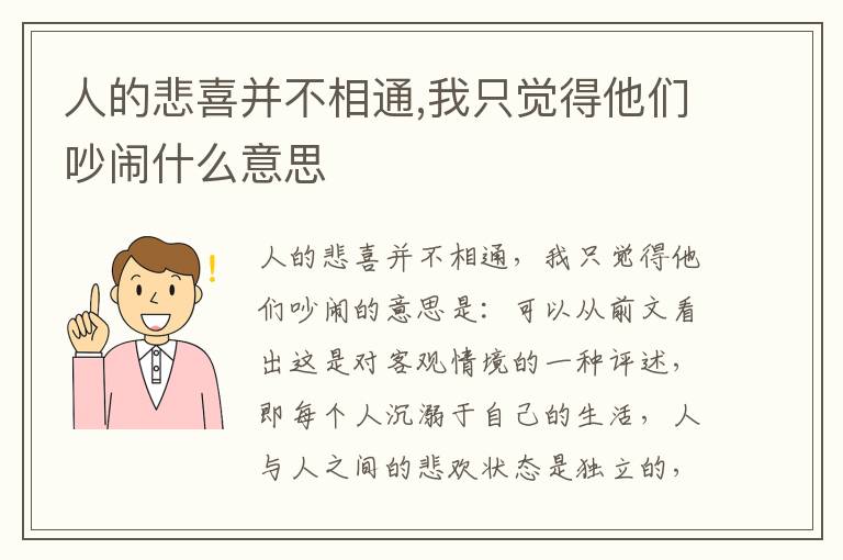 人的悲喜并不相通,我只觉得他们吵闹的意思是:可以从前文看出这是对客观情境的一种评述,即:每个人沉溺于自己的生活,人与人之间的悲欢状态是独立的,断裂的。后半句“我只觉得他们吵闹”则把自己也纳入了情境之中。可以想象一个弄堂两边林立着旧式房屋,每个窗口背后是人们各自的生活。