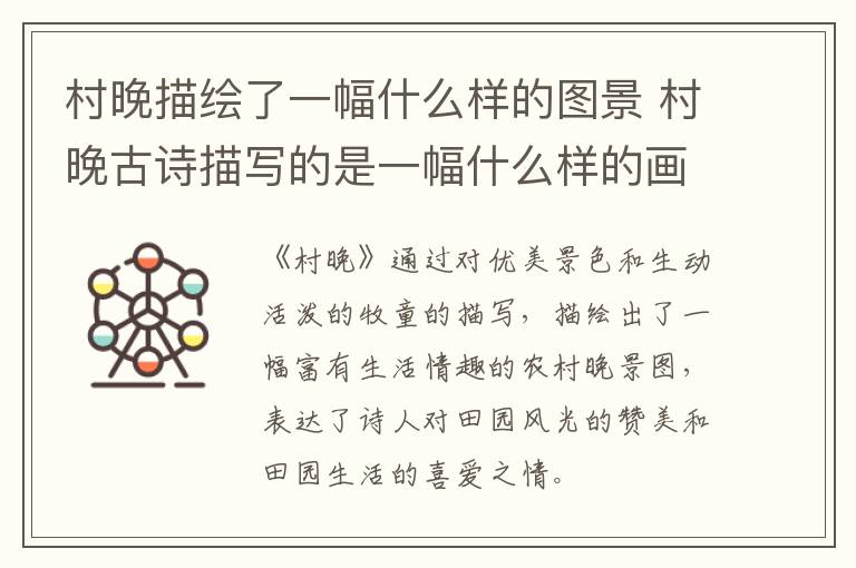《村晚》通过对优美景色和生动活泼的牧童的描写,描绘出了一幅富有生活情趣的农村晚景图,表达了诗人对田园风光的赞美和田园生活的喜爱之情。