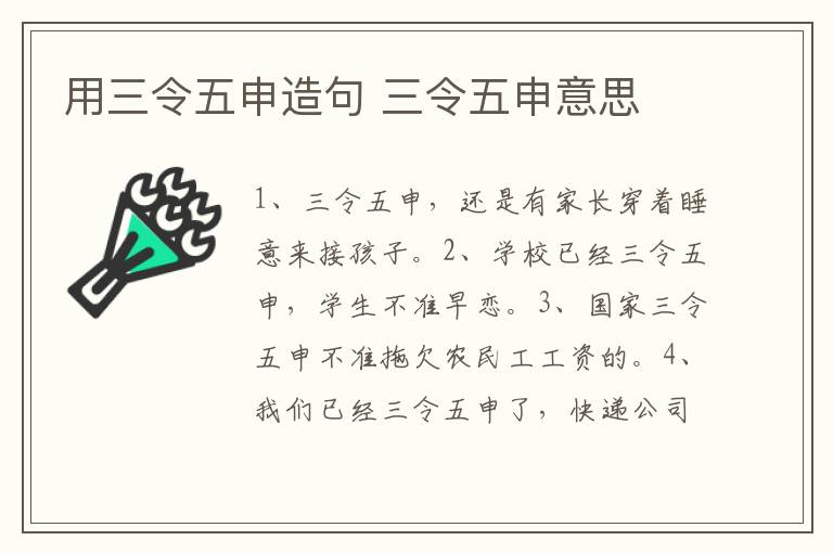 三令五申(拼音:sān lìng wǔ shēn)是一个汉语成语,最早出自西汉·司马迁《史记·孙子吴起列传》。该成语意思是多次命令和告诫。