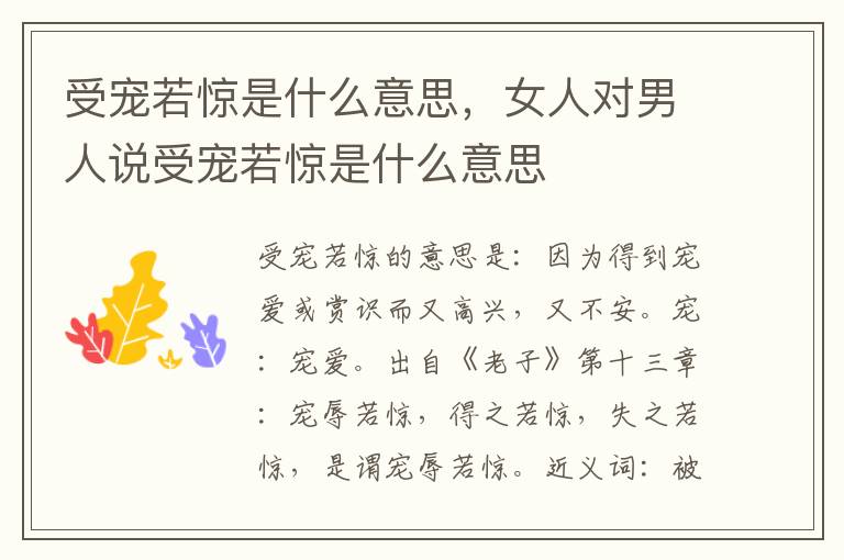 1. 【解释】:宠:宠爱。因为得到宠爱或赏识而又高兴,又不安。