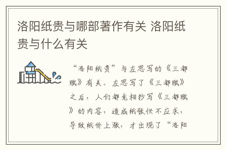 “洛阳纸贵”与左思写的《三都赋》有关。左思写了《三都赋》之后,人们都竞相抄写《三都赋》的内容,造成纸张供不应求,导致纸价上涨,才出现了“洛阳纸贵”这一成语。