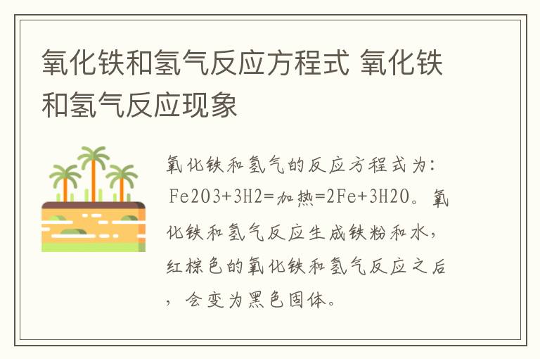 氧化铁和氢气的反应方程式为: Fe2O3+3H2=加热=2Fe+3H2O。氧化铁和氢气反应生成铁粉和水,红棕色的氧化铁和氢气反应之后,会变为黑色固体。