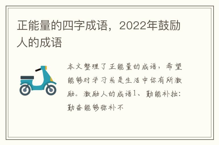 本文整理了正能量的成语,希望能够对学习或是生活中你有所激励。