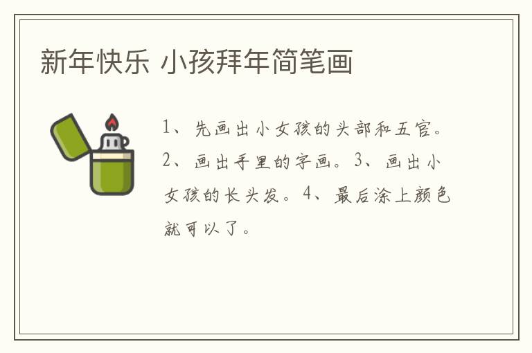 新年快乐 小孩拜年简笔画 知识分享 4月14日 编辑 童画 取消关注 关注 私信 1、先画出小女孩的头部和五官。 2、画出手里的字画。 3、画出小女孩的长头发。 4、最后涂上颜色就可以了。 No related posts. 本文内容由互联网用户自发贡献,该文观点仅代表作者本人。本站仅提供信息存储空间服务,不拥有所有权,不承担相关法律责任。如发现本站有涉嫌抄袭侵权/违法违规的内容, 请发送邮件至 2245678901@qq.com 举报,一经查实,本站将立刻删除。 给TA打赏 共{{data.count}}人 人已打赏