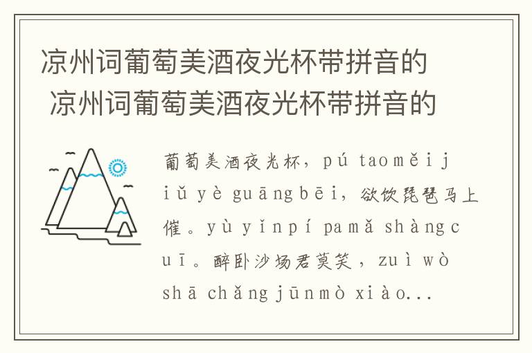 凉州词是唐代诗人王翰的作品,本诗是凉州词二首的其一,写的是边塞风情。
