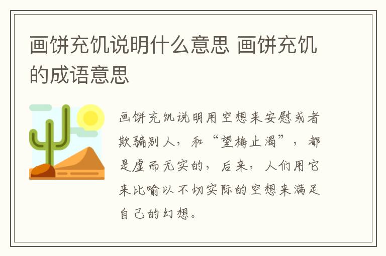 画饼充饥说明用空想来安慰或者欺骗别人,和“望梅止渴”,都是虚而无实的,后来,人们用它来比喻以不切实际的空想来满足自己的幻想。
