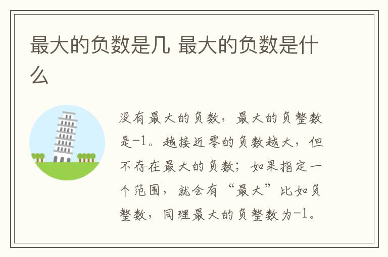越接近零的负数越大,但不存在最大的负数;如果指定一个范围,就会有“最大”比如负整数,同理最大的负整数为-1。