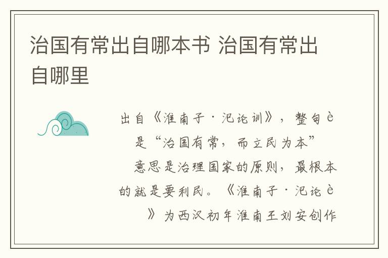 治国有常出自哪本书 治国有常出自哪里 知识分享 4月13日 编辑 童画 取消关注 关注 私信 “治国有常”出自《淮南子·汜论训》,整句话是“治国有常,而立民为本”,意思是治理国家的原则,最根本的就是要利民。 《淮南子·汜论训》为西汉初年淮南王刘安创作的一篇散文,是一部“融汇百家,博极古今”的划时代的文化巨著。 No related posts. 本文内容由互联网用户自发贡献,该文观点仅代表作者本人。本站仅提供信息存储空间服务,不拥有所有权,不承担相关法律责任。如发现本站有涉嫌抄袭侵权/违法违规的内容, 请发送邮件至 2245678901@qq.com 举报,一经查实,本站将立刻删除。 给TA打赏 共{{data.count}}人 人已打赏