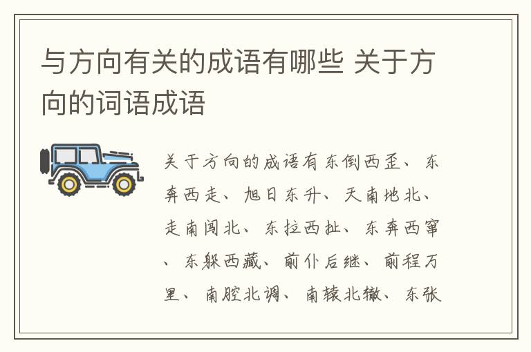 关于方向的成语有东倒西歪、东奔西走、旭日东升、天南地北、走南闯北、东拉西扯、东奔西窜、东躲西藏、前仆后继、前程万里、南腔北调、南辕北辙、东张西望、旁门左道等。