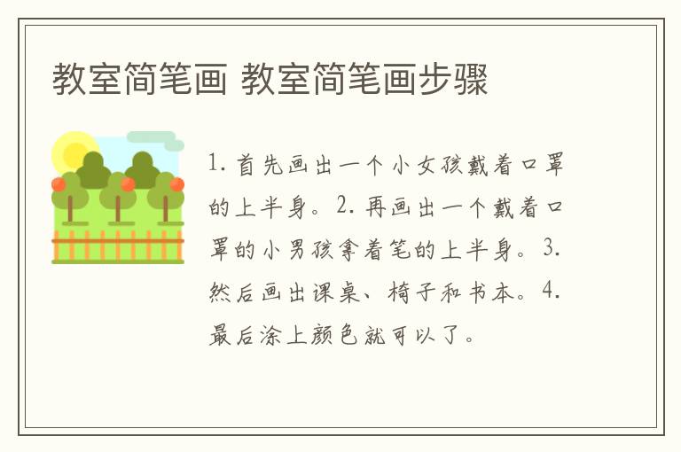 教室简笔画 教室简笔画步骤 知识分享 4月13日 编辑 童画 取消关注 关注 私信 1.首先画出一个小女孩戴着口罩的上半身。 2.再画出一个戴着口罩的小男孩拿着笔的上半身。 3.然后画出课桌、椅子和书本。 4.最后涂上颜色就可以了。 No related posts. 本文内容由互联网用户自发贡献,该文观点仅代表作者本人。本站仅提供信息存储空间服务,不拥有所有权,不承担相关法律责任。如发现本站有涉嫌抄袭侵权/违法违规的内容, 请发送邮件至 2245678901@qq.com 举报,一经查实,本站将立刻删除。 给TA打赏 共{{data.count}}人 人已打赏