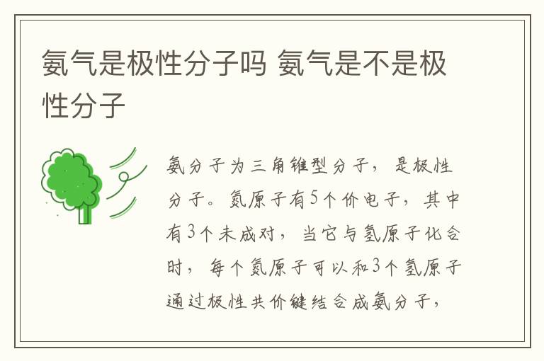 氨分子为三角锥型分子,是极性分子。