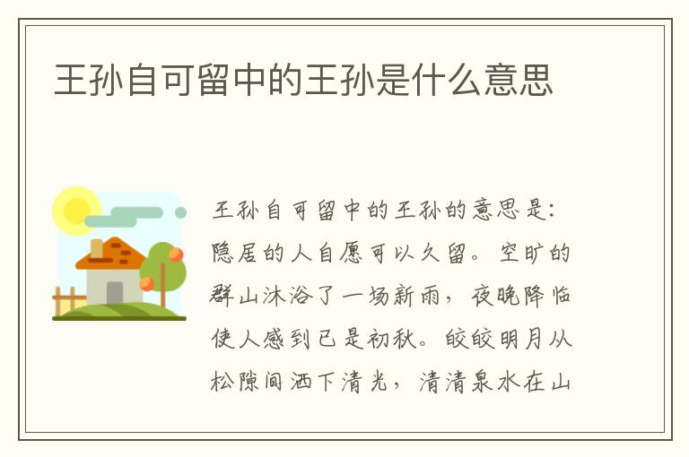 王孙自可留中的王孙的意思是:隐居的人自愿可以久留。空旷的群山沐浴了一场新雨,夜晚降临使人感到已是初秋。皎皎明月从松隙间洒下清光,清清泉水在山石上淙淙淌流。春日的芳菲不妨任随它消歇,秋天的山中隐居的人自可以久留。