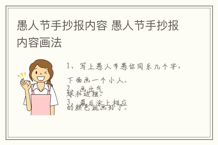 愚人节手抄报内容 愚人节手抄报内容画法 知识分享 4月17日 编辑 童画 取消关注 关注 私信 1、写上愚人节愚你同乐几个字,下面画一个小人。 2、画出气球和边框。 3、最后涂上相应的颜色就画好了。 No related posts. 本文内容由互联网用户自发贡献,该文观点仅代表作者本人。本站仅提供信息存储空间服务,不拥有所有权,不承担相关法律责任。如发现本站有涉嫌抄袭侵权/违法违规的内容, 请发送邮件至 2245678901@qq.com 举报,一经查实,本站将立刻删除。 给TA打赏 共{{data.count}}人 人已打赏