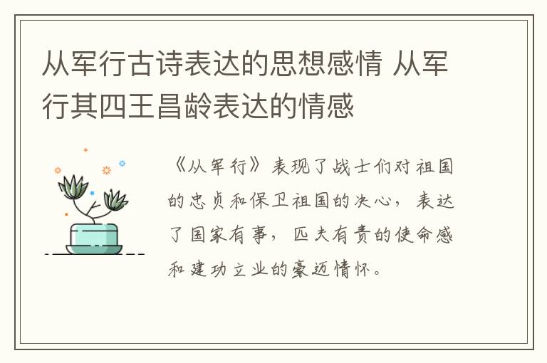 《从军行》表现了战士们对祖国的忠贞和保卫祖国的决心,表达了国家有事,匹夫有责的使命感和建功立业的豪迈情怀。