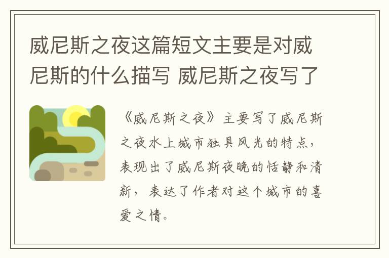 《威尼斯之夜》主要写了威尼斯之夜水上城市独具风光的特点,表现出了威尼斯夜晚的恬静和清新,表达了作者对这个城市的喜爱之情。