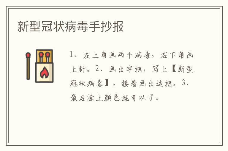 新型冠状病毒手抄报 知识分享 5月17日 编辑 童画 取消关注 关注 私信 1、左上角画两个病毒,右下角画上针。 2、画出字框,写上【新型冠状病毒】,接着画出边框。 3、最后涂上颜色就可以了。 No related posts. 本文内容由互联网用户自发贡献,该文观点仅代表作者本人。本站仅提供信息存储空间服务,不拥有所有权,不承担相关法律责任。如发现本站有涉嫌抄袭侵权/违法违规的内容, 请发送邮件至 2245678901@qq.com 举报,一经查实,本站将立刻删除。 给TA打赏 共{{data.count}}人 人已打赏