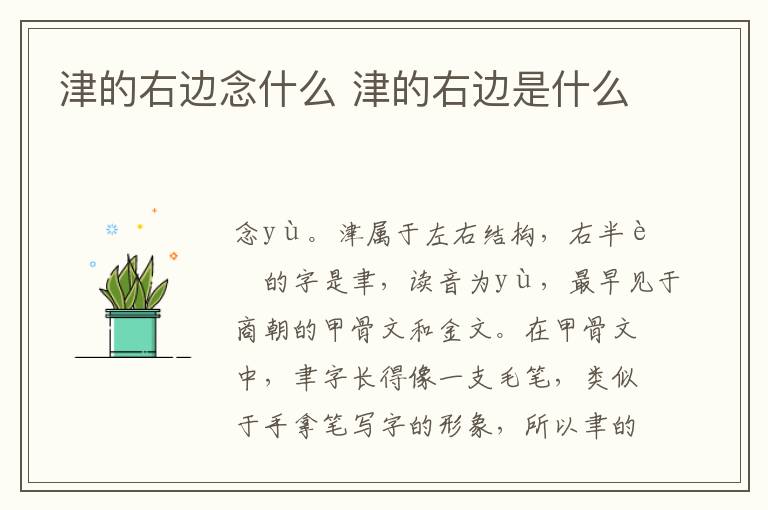 津的右边念什么 津的右边是什么 知识分享 7月8日 编辑 童画 取消关注 关注 私信 津的右边念yù。 津属于左右结构,右半边的字是聿,读音为yù,最早见于商朝的甲骨文和金文。在甲骨文中,聿字长得像一支毛笔,类似于手拿笔写字的形象,所以聿的本意是书写时所用的笔,如《太玄·饰》:“舌聿之利,利见知人也。”,后来常用作助词,用于句首或句中,表示承接,如《诗经·唐风·蟋蟀》:“蟋蟀在堂,岁聿其莫。” No related posts. 本文内容由互联网用户自发贡献,该文观点仅代表作者本人。本站仅提供信息存储空间服务,不拥有所有权,不承担相关法律责任。如发现本站有涉嫌抄袭侵权/违法违规的内容, 请发送邮件至 2245678901@qq.com 举报,一经查实,本站将立刻删除。 给TA打赏 共{{data.count}}人 人已打赏