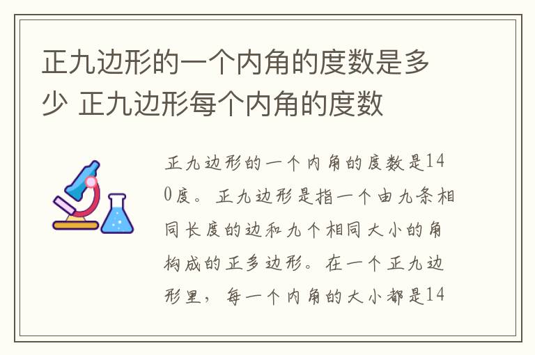 正九边形的一个内角的度数是140度。正九边形是指一个由九条相同长度的边和九个相同大小的角构成的正多边形。在一个正九边形里,每一个内角的大小都是140度,每一个外角大小都是40度。在平面多边形中,边数相等的凸多边形和凹多边形内角和相等。但是空间多边形不适用,可逆用公式。