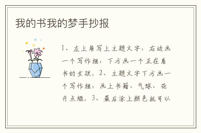 我的书我的梦手抄报 知识分享 7月9日 编辑 童画 取消关注 关注 私信 1、左上角写上主题文字,右边画一个写作框,下方画一个正在看书的女孩。 2、主题文字下方画一个写作框,画上书籍、气球、花卉点缀。 3、最后涂上颜色就可以了。 No related posts. 本文内容由互联网用户自发贡献,该文观点仅代表作者本人。本站仅提供信息存储空间服务,不拥有所有权,不承担相关法律责任。如发现本站有涉嫌抄袭侵权/违法违规的内容, 请发送邮件至 2245678901@qq.com 举报,一经查实,本站将立刻删除。 给TA打赏 共{{data.count}}人 人已打赏