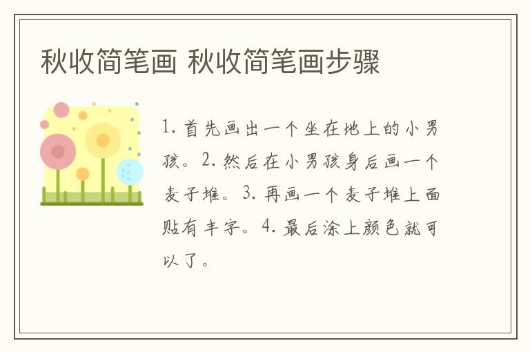秋收简笔画 秋收简笔画步骤 知识分享 7月10日 编辑 童画 取消关注 关注 私信 1.首先画出一个坐在地上的小男孩。 2.然后在小男孩身后画一个麦子堆。 3.再画一个麦子堆上面贴有丰字。 4.最后涂上颜色就可以了。 No related posts. 本文内容由互联网用户自发贡献,该文观点仅代表作者本人。本站仅提供信息存储空间服务,不拥有所有权,不承担相关法律责任。如发现本站有涉嫌抄袭侵权/违法违规的内容, 请发送邮件至 2245678901@qq.com 举报,一经查实,本站将立刻删除。 给TA打赏 共{{data.count}}人 人已打赏
