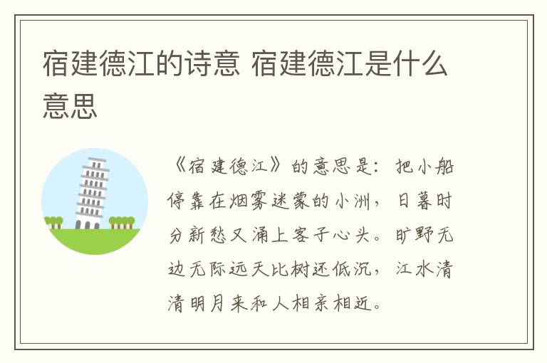 《宿建德江》是唐代诗人孟浩然创作的五言绝句,内容为: