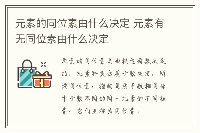 元素的同位素是由核电荷数决定的,元素种类由质子数决定。所谓同位素,指的是质子数相同而中子数不同的同一元素的不同核素,它们互称为同位素。