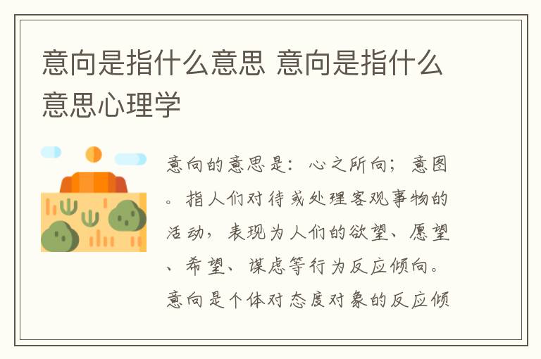 意向的意思是:心之所向;意图。指人们对待或处理客观事物的活动,表现为人们的欲望、愿望、希望、谋虑等行为反应倾向。意向是个体对态度对象的反应倾向,即行为的准备状态,准备对态度对象做出一定的反应,因而是一种行为倾向,或叫做意图、意动。