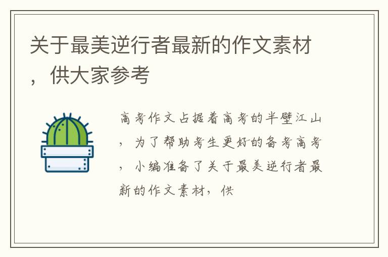 高考作文占据着高考的半壁江山,为了帮助考生更好的备考高考,小编准备了关于最美逆行者最新的作文素材,供大家参考。