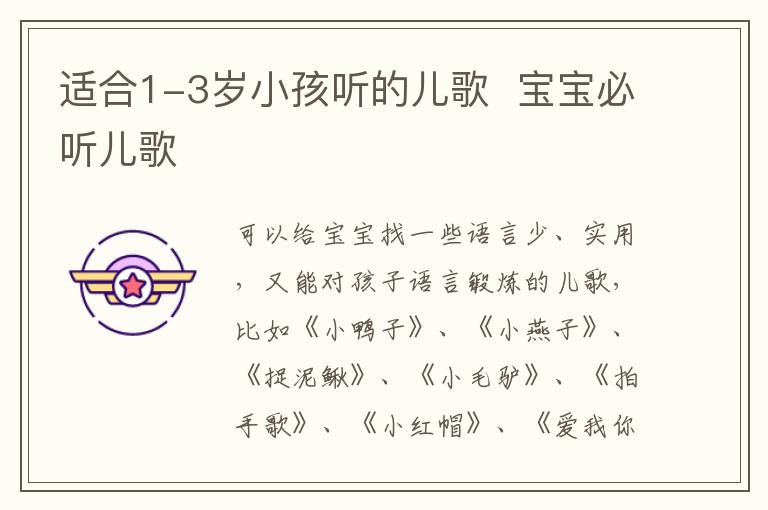 可以给宝宝找一些语言少、实用,又能对孩子语言锻炼的儿歌,比如《小鸭子》、《小燕子》、《捉泥鳅》、《小毛驴》、《拍手歌》、《小红帽》、《爱我你就抱抱我》、《拔萝卜》、《丢手绢》、《数字歌》、《小白兔》、《起床歌》。