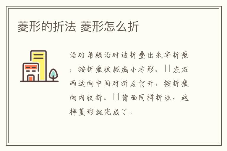 菱形的折法 菱形怎么折 知识分享 8月27日 编辑 童画 取消关注 关注 私信 1、沿对角线沿对边折叠出米字折痕,按折痕收拢成小方形。 2、左右两边向中间对折后打开,按折痕向内收折。 3、背面同样折法,这样菱形就完成了。 No related posts. 本文内容由互联网用户自发贡献,该文观点仅代表作者本人。本站仅提供信息存储空间服务,不拥有所有权,不承担相关法律责任。如发现本站有涉嫌抄袭侵权/违法违规的内容, 请发送邮件至 2245678901@qq.com 举报,一经查实,本站将立刻删除。 给TA打赏 共{{data.count}}人 人已打赏