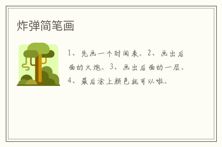 炸弹简笔画 知识分享 9月14日 编辑 童画 取消关注 关注 私信 1、先画一个时间表。 2、画出后面的火炮。 3、画出后面的一层。 4、最后涂上颜色就可以啦。 No related posts. 本文内容由互联网用户自发贡献,该文观点仅代表作者本人。本站仅提供信息存储空间服务,不拥有所有权,不承担相关法律责任。如发现本站有涉嫌抄袭侵权/违法违规的内容, 请发送邮件至 2245678901@qq.com 举报,一经查实,本站将立刻删除。 给TA打赏 共{{data.count}}人 人已打赏