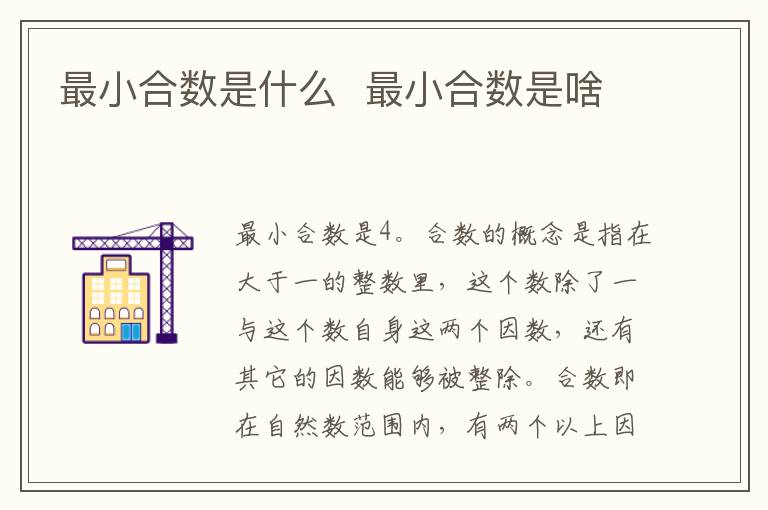2为最小的质数,它的因数只有1和它本身,也不是合数。3为质数,它不能够被其它自然数整除,只有1和它本身两个因数,也不是合数。4是偶数,可以被二整除,即4=2*2。因此4可以被1、2、4整除,即4有1、2、4三个因数,所以4是最小的合数。