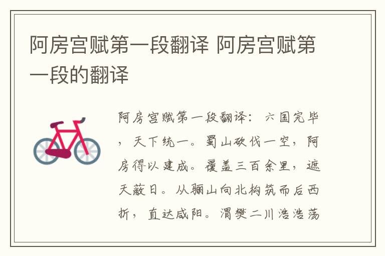 阿房宫赋第一段翻译:六国完毕,天下统一。蜀山砍伐一空,阿房得以建成。覆盖三百余里,遮天蔽日。从骊山向北构筑而后西折,直达咸阳。渭樊二川浩浩荡荡,流入宫墙。五步一楼,十步一阁。走廊如绸带回绕,飞檐像鸟嘴高啄。各因地势制宜,钩连对凑相互配合。