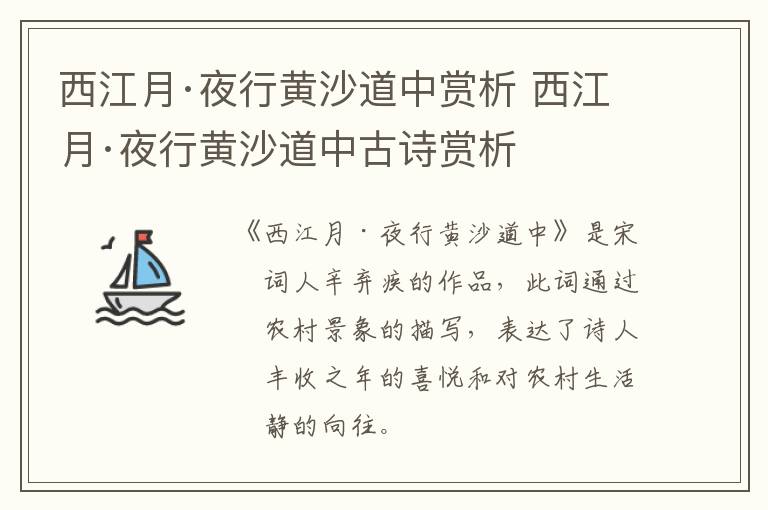 《西江月·夜行黄沙道中》是宋代词人辛弃疾的作品,全词内容为: