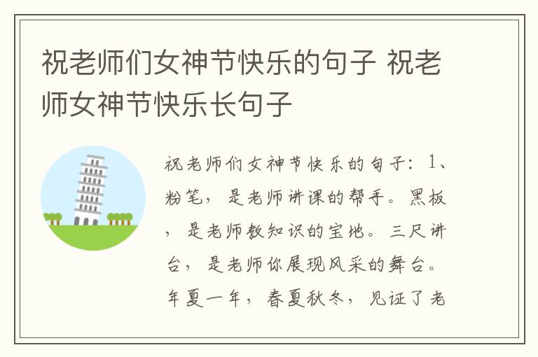 1、粉笔,是老师讲课的帮手。黑板,是老师教知识的宝地。三尺讲台,是老师你展现风采的舞台。年夏一年,春夏秋冬,见证了老师的无私奉献。老师,女神节快乐,你辛苦了。
