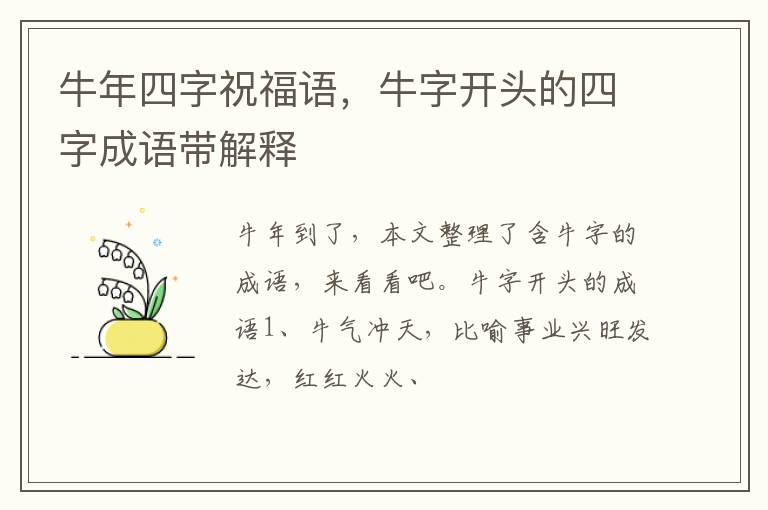 牛年到了,本文整理了含牛字的成语,来看看吧。