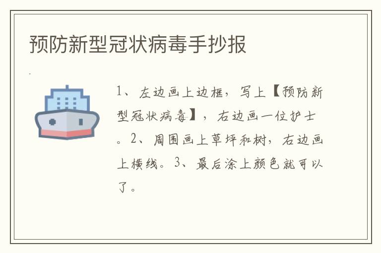 预防新型冠状病毒手抄报 知识分享 10月2日 编辑 童画 取消关注 关注 私信 1、左边画上边框,写上【预防新型冠状病毒】,右边画一位护士。 2、周围画上草坪和树,右边画上横线。 3、最后涂上颜色就可以了。 No related posts. 本文内容由互联网用户自发贡献,该文观点仅代表作者本人。本站仅提供信息存储空间服务,不拥有所有权,不承担相关法律责任。如发现本站有涉嫌抄袭侵权/违法违规的内容, 请发送邮件至 2245678901@qq.com 举报,一经查实,本站将立刻删除。 给TA打赏 共{{data.count}}人 人已打赏