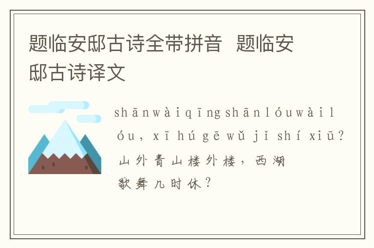 《题临安邸》是宋代诗人林升创作的一首七绝。诗的头句“山外青山楼外楼”