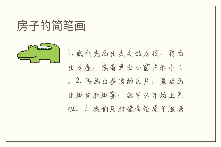 房子的简笔画 知识分享 10月2日 编辑 童画 取消关注 关注 私信 1.我们先画出尖尖的房顶,再画出房屋,接着画出小窗户和小门, 2.再画出屋顶的瓦片,最后画出烟囱和烟雾,就可以开始上色啦, 3.我们先用柠檬黄给屋子涂满,再用浅棕色给小门涂满, 4.接着用灰色给小窗户涂满,再用蓝色给房屋烟囱涂满,最后再用浅灰色给烟雾涂满。 No related posts. 本文内容由互联网用户自发贡献,该文观点仅代表作者本人。本站仅提供信息存储空间服务,不拥有所有权,不承担相关法律责任。如发现本站有涉嫌抄袭侵权/违法违规的内容, 请发送邮件至 2245678901@qq.com 举报,一经查实,本站将立刻删除。 给TA打赏 共{{data.count}}人 人已打赏