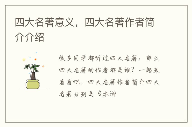 很多同学都听过四大名著,那么四大名著的作者都是谁?一起来看看吧。