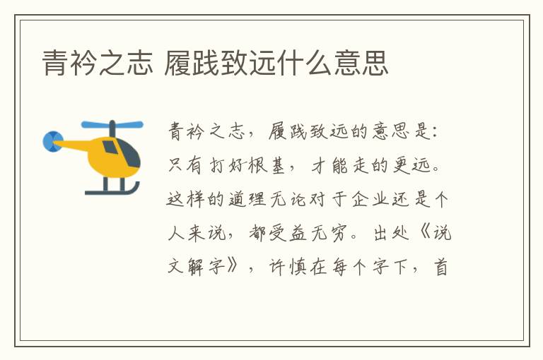 青衿之志,履践致远的意思是:只有打好根基,才能走的更远。这样的道理无论对于企业还是个人来说,都受益无穷。出处《说文解字》,许慎在每个字下,首先训释词义,然后对字形构造进行分析,如果是形声字,在分析字形时就指示了读音,如果是非形声字,则常常用读若、读与某同等方式指示读音。