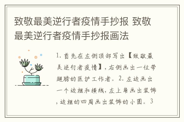 致敬最美逆行者疫情手抄报 致敬最美逆行者疫情手抄报画法 知识分享 10月2日 编辑 童画 取消关注 关注 私信 1.首先在左侧顶部写出【致敬最美逆行者疫情】,右侧画出一位带翅膀的医护工作者。 2.左边画出一个边框和横线,左上角画出装饰,边框的四周画出装饰的小圆。 3.最后涂上颜色就可以了。 No related posts. 本文内容由互联网用户自发贡献,该文观点仅代表作者本人。本站仅提供信息存储空间服务,不拥有所有权,不承担相关法律责任。如发现本站有涉嫌抄袭侵权/违法违规的内容, 请发送邮件至 2245678901@qq.com 举报,一经查实,本站将立刻删除。 给TA打赏 共{{data.count}}人 人已打赏