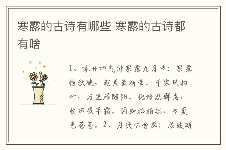 寒露惊秋晚,朝看菊渐黄。