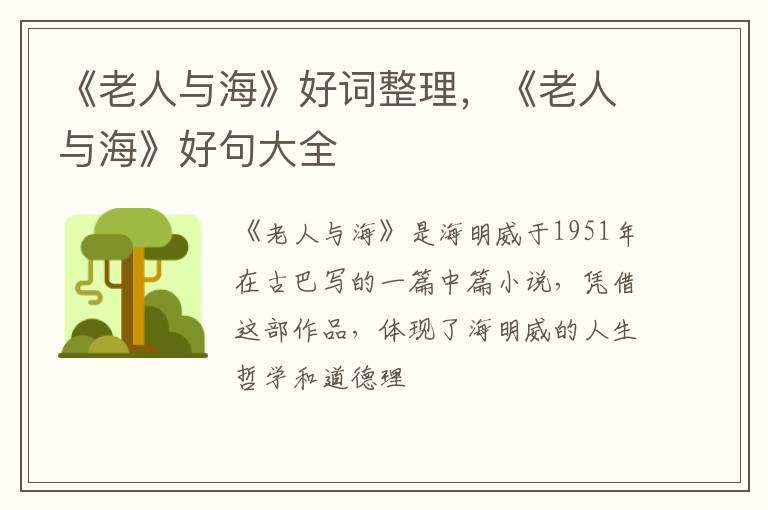 《老人与海》是海明威于1951年在古巴写的一篇中篇小说,凭借这部作品,体现了海明威的人生哲学和道德理想,永不服输的斗士精神和积极向上的乐观人生态度。本文中,小编整理了这部名著中的好词好句,欢迎大家积累!