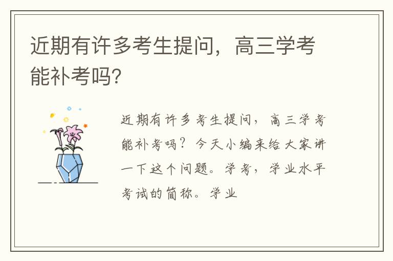 近期有许多考生提问,高三学考能补考吗?今天小编来给大家讲一下这个问题。