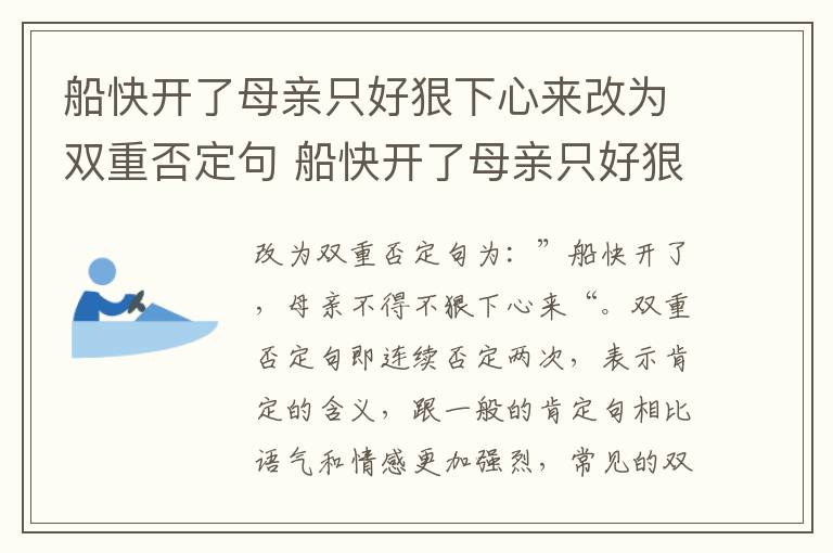 “船快开了,母亲只好狠下心来”改为双重否定句为:”船快开了,母亲不得不狠下心来“。