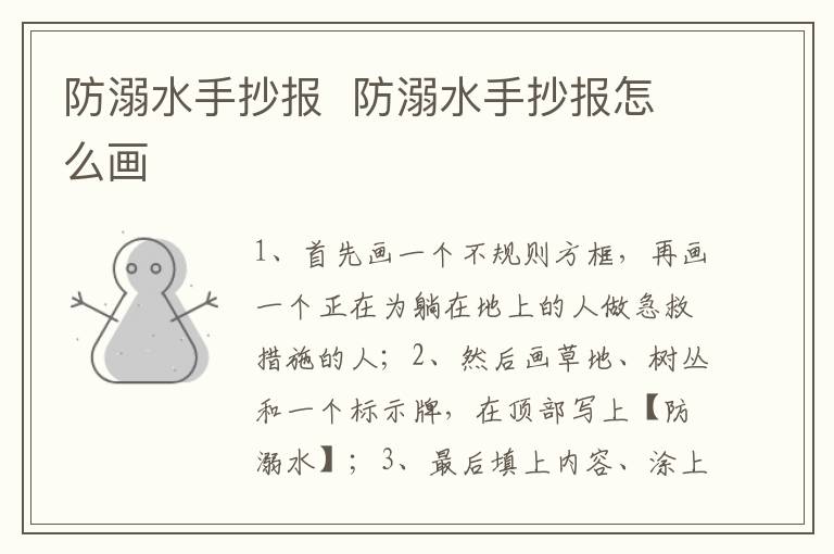 防溺水手抄报 防溺水手抄报怎么画简单又漂亮 知识分享 10月3日 编辑 童画 取消关注 关注 私信 1、首先画一个不规则方框,再画一个正在为躺在地上的人做急救措施的人; 2、然后画草地、树丛和一个标示牌,在顶部写上【防溺水】; 3、最后填上内容、涂上颜色就可以了。 No related posts. 本文内容由互联网用户自发贡献,该文观点仅代表作者本人。本站仅提供信息存储空间服务,不拥有所有权,不承担相关法律责任。如发现本站有涉嫌抄袭侵权/违法违规的内容, 请发送邮件至 2245678901@qq.com 举报,一经查实,本站将立刻删除。 给TA打赏 共{{data.count}}人 人已打赏