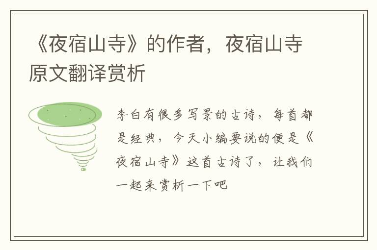李白有很多写景的古诗,每首都是经典,今天小编要说的便是《夜宿山寺》这首古诗了,让我们一起来赏析一下吧。