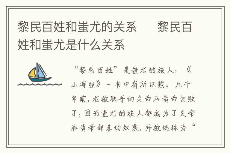 “黎民百姓”是蚩尤的族人,《山海经》一书中有所记载。几千年前,尤被联手的炎帝和黄帝打败了,因而重尤的族人都成为了炎帝和黄帝部落的奴隶,并被统称为"黎民。因为龙的族人是战败方,所以“黎民”这个称呼在当时并不是一个好称呼,当时的黎民都处于阶级金字塔的底层。既然"黎民代表的是崔尤的族人,那么“百姓”代表的则是炎族和黄族的族人。