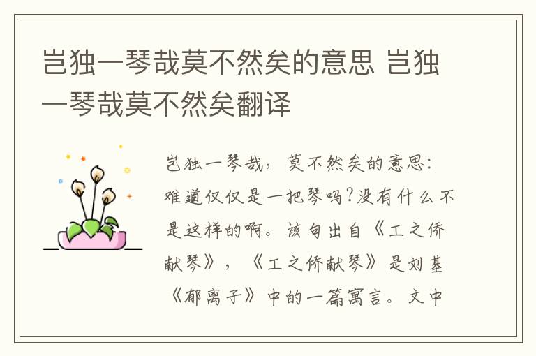 岂独一琴哉,莫不然矣的意思:难道仅仅是一把琴吗?没有什么不是这样的啊。该句出自《工之侨献琴》,《工之侨献琴》是刘基《郁离子》中的一篇寓言。文中以工之侨二次献琴的不同遭遇,揭露了社会上评价、判断事物优劣仅凭外表,而非考究内在品质的现象,告诫人们切不可被表象所迷惑、蒙蔽。